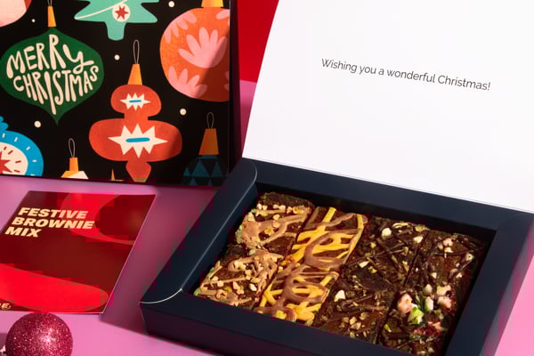 All your festive favourites in one brownie box. Ferrero Rocher, Candy Cane, Chocolate Orange, and Chestnut. Make more mischief, more smiles, and more excuses for chocolate.