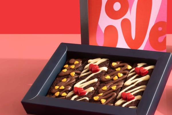 Roses are red, but let’s be honest, brownies are better. When it comes to showing love, nothing beats a box of our rich, gooey, utterly irresistible brownies delivered straight to their door. Whether you’re celebrating love, friendship, or just treating yourself, these decadent squares of triple chocolate and salted caramel heaven are the ultimate edible love letter. Made with the finest ingredients, and topped with little love hearts they're perfect for sharing… or not! A thoughtful gift or a well-deserved indulgence, our brownies are love at first bite.