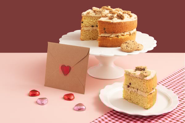 Light vanilla gluten free sponge layered with chocolate chips and sandwiched with creamy, cookie flavoured buttercream, with chunks of gluten free crunchy cookies running through every bite. It is rich, comforting and unapologetically fun, with flavours that bring to mind classic cookie dough and fresh from the oven treats. Finished with a scattering of broken cookies on top, it proves that being a smart cookie sometimes means going all in. When cake meets cookies, smiles are pretty much guaranteed.