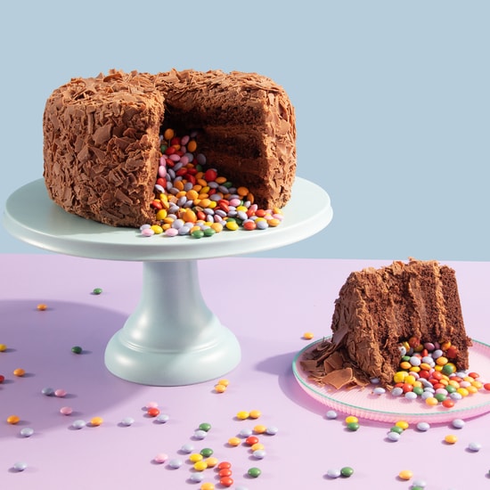 Our Surprise Gluten Free Pinata Cake has four layers of delicious and rich chocolate sponge, which are sandwiched together with a velvety smooth chocolate buttercream. To create the ultimate chocolate cake the chocolate buttercream and chocolate flakes are smothered all over the outside, which also gives a lovely bit of crunch. To top it all off there is a fun surprise in the middle - colourful chocolate beans.