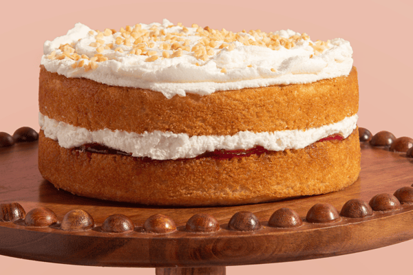 Award-winning, much-missed and finally back. Our Vegan Bakewell Cake layers soft almond sponge with buttery frosting, a generous swipe of raspberry jam and a crunchy crown of toasted almonds. Some flavours deserve an encore (or three).