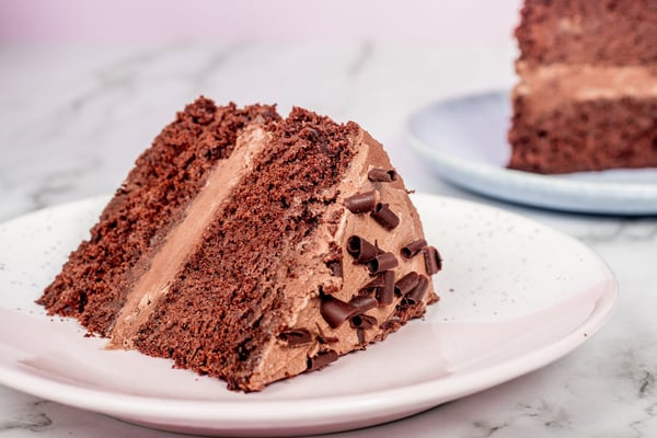 Indulge in our totally decadent Vegan Chocolate Sponge Cake, generously sandwiched together and topped with chocolate vegan buttercream and sprinkled with dark chocolate curls on top. It's rich, moist and delicious.
