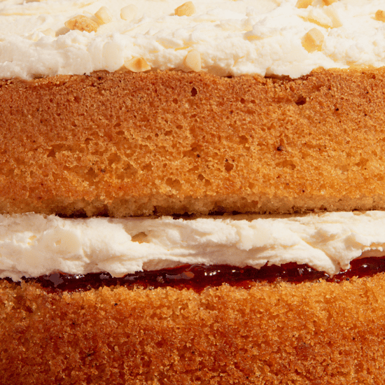 Award-winning, much-missed and finally back. Our Bakewell Cake layers soft almond sponge with buttery frosting, a generous swipe of raspberry jam and a crunchy crown of toasted almonds. Some flavours deserve an encore (or three).