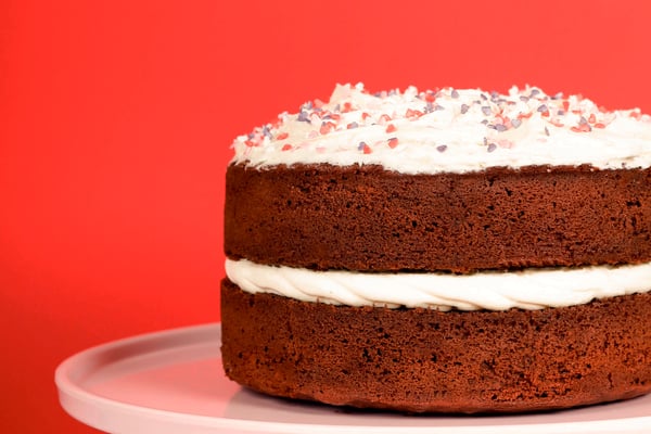 Deep red sponge, cream cheese-flavoured frosting, no explaining required. For when you want to make a statement (but make it a tasty one).